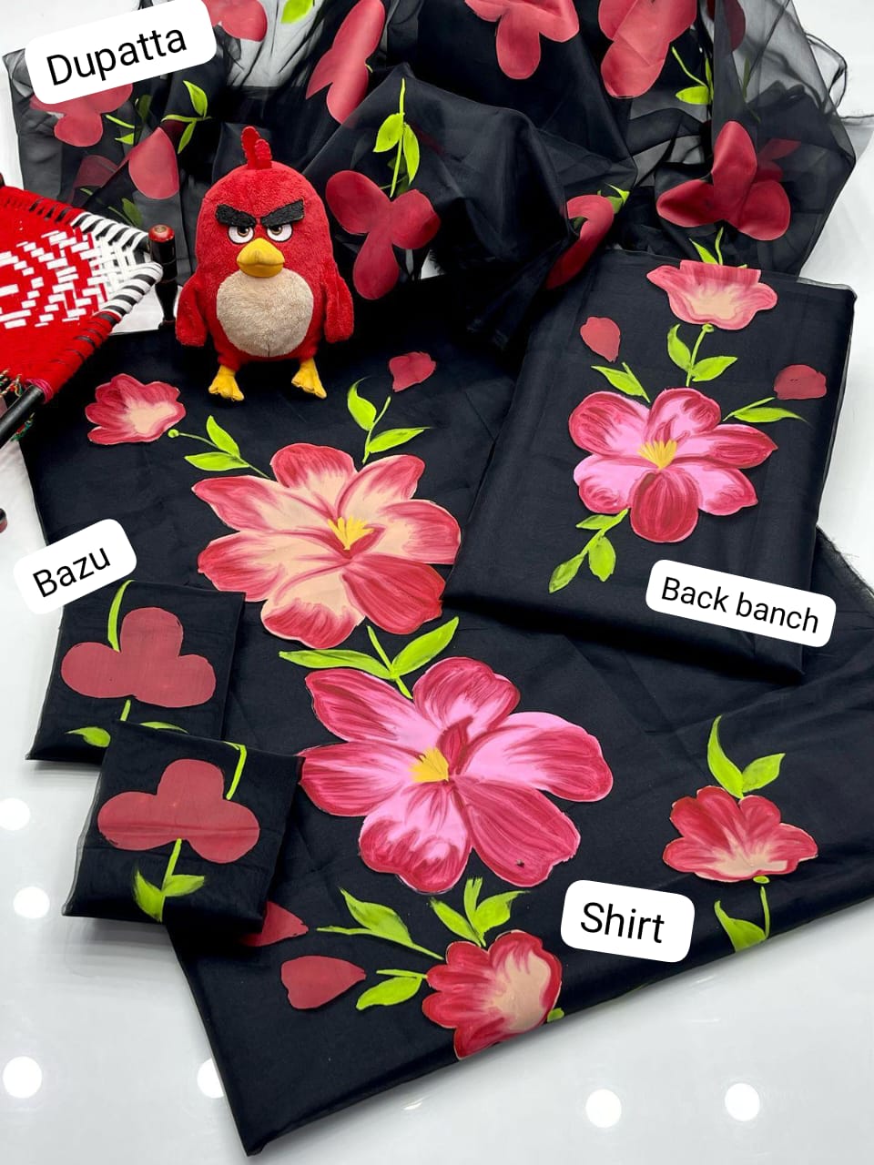 Shirt organza hand paint work & sleeves banchย